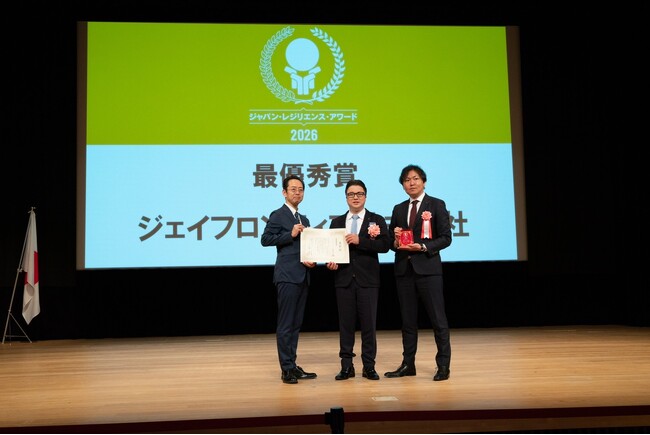 このたび同サービスが、内閣官房が推進する国土強靱化基本計画において、「国土強靱化貢献団体認証」(レジリエンス認証)の唯一の認定組織である一般社団法人レジリエンスジャパン推進協議会が2026年4月21日に主催した「ジャパン・レジリエンス・アワード(強靱化大賞)2026」で最優秀賞を受賞しました。
