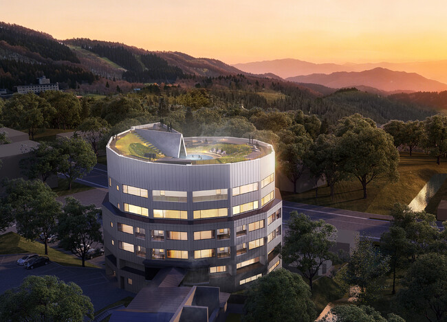 館内には、蔵王の自然と一体になれる回遊型のウェルネスエリアが設けられます。強酸性の名湯を濃度別の浴槽で堪能する温泉入浴に加え、サウナやラウンジを備えたエリアを自由に回遊し、思い思いの「整い」を追求できます。この「巡る」体験は、山岳信仰とともに歩んできた蔵王の地で、一歩ずつ山を登り、心身を清めてきた歴史に着想を得たものです。タワー型の宿を螺旋(スパイラル)状に巡りながら上階へと進むプロセスが、日々の忙しさやストレスを洗い流し、心身を解きほぐす道筋となります。その道筋の頂上で待っているのは、ルーフトップテラスの360度広がる絶景と「御釜」をモチーフとした柔らかな湯気のジャグジー。心身を解放し、このスパイラルによる「整い」が完成する終着点です。