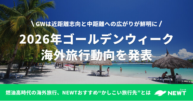 株式会社令和トラベル(本社:東京都渋谷区、代表取締役社長:篠塚 孝哉)は、かしこい、おトク、旅行アプリ『NEWT(ニュート)』における予約データをもとに、2026年ゴールデンウィークの海外旅行動向を分析しました。