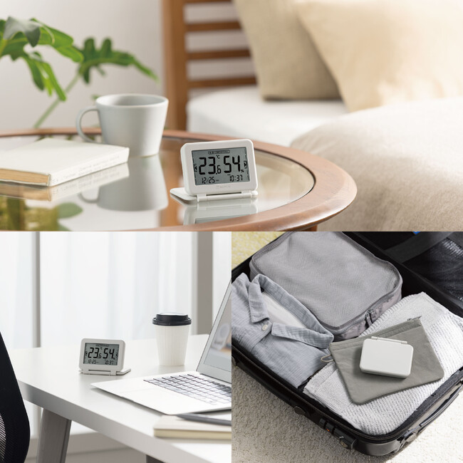 家の中のさまざまな場所や旅先のホテルなどで、温度・湿度を手軽に確認できます。