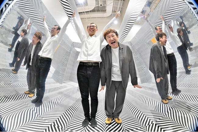 [画像2: https://prcdn.freetls.fastly.net/release_image/29501/4959/29501-4959-ee5eecae408c4bb8a909b7b82699d805-1500x1000.jpg?width=536&quality=85%2C75&format=jpeg&auto=webp&fit=bounds&bg-color=fff ]「大海原&合わせ鏡」を体験中のジョイマン