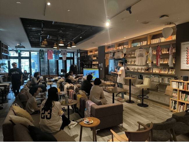 一般的なスポーツバーのように「飲食を楽しみながら観戦する場」とは異なり、街スタFUKUOKAは、観戦体験そのものと参加者同士の一体感を主軸に設計されている点が特徴です。
