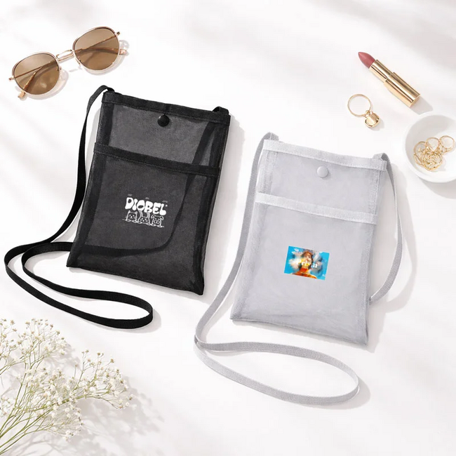 軽くて持ち運びやすい薄型設計!フロントポケット付きで便利なメッシュサコッシュを1個から簡単にオリジナル作成