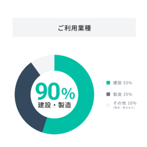 建設・製造業でのご利用が90%を占めています。その他への広がりも顕著。利用業種の90%を建設・製造業が占めており、建築・土木から工場、プラントまで、過酷な環境下での安全管理のスタンダードとして定着しつつあります。