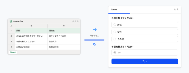 調査票をアップロードするだけでAIがWebアンケートを自動生成するアンケートシステム「Kicue(ききゅう)」を正式リリース