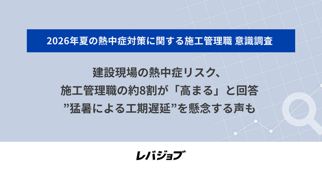 レバレジーズ株式会社が運営するエッセンシャルワーカー向けキャリア支援サービス「レバジョブ」(https://levjob.jp/)は、施工管理職573名を対象に、2026年夏の熱中症対策に関する意識調査を実施しました。
