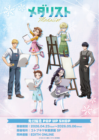 株式会社イーディスは、TVアニメ「メダリスト」の描き下ろしイラスト「Drawing」と大川ぶくぶ氏によるミニキャライラストを使用した商品をコトブキヤ秋葉原館にて先行販売致します。