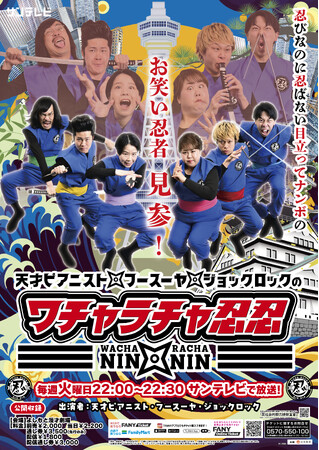 多くの若手芸人が活躍する「よしもと漫才劇場」にて公開収録を実施している、サンテレビの番組『ワチャラチャ忍忍』に、新メン バーとしてジョックロックが加入し、番組がリニューアルいたします。 『ワチャラチャ忍忍』は、2023年7月に放送を開始した“史上初!?”の忍者エンターテインメントバラエティで、カベポスター・天才ピアニス ト・フースーヤの3組が忍者に扮し、さまざまなゲームや企画に挑戦しながら、“面白い忍者”を目指して修行を重ねる番組として好評を 博してきました。