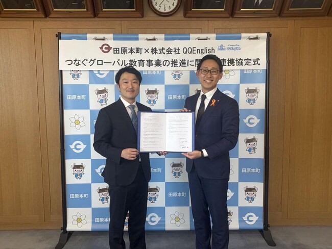 株式会社QQ English(本社:東京都新宿区、代表取締役:藤岡頼光、以下QQEnglish)は、奈良県田原本町(町長:高江 啓史、以下田原本町)と、地域活性化起業人制度を活用した連携協定を締結しました。本協定は、QQEnglishが有する人的・教育資源を活用し、田原本町が推進する「つなぐグローバル教育事業」を推進するとともに、英語教育の質の向上に向けた体制構築を行うものです。これにより、子どもたちが英語や異文化に触れる機会を創出し、将来的な定住人口および交流人口の拡大につなげることを目的としています。本協定に基づき、QQEnglishの人材を田原本町へ派遣し、「つなぐグローバル教育事業」の一環として、幼稚園・小学校を中心とした英語教育支援や英語イベントの実施などを推進してまいります。
