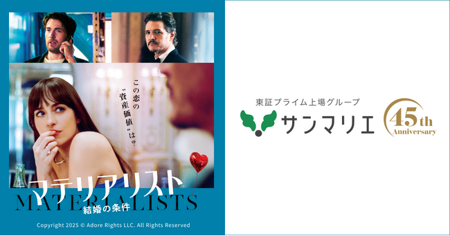 創業45周年を迎える結婚相談所サンマリエ(本社:東京都新宿区、代表取締役:小平 佳洋、以下サンマリエ)は、2026年5月29日(金)公開の映画『マテリアリスト 結婚の条件』とのタイアップを決定いたしました。