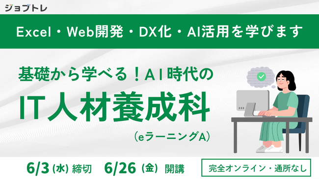 【自宅でオンライン学習】プログラミングが学べる求職者支援訓練「基礎から学べる!AI時代のIT人材養成科(eラーニングA)」6/26開講!受講生募集開始