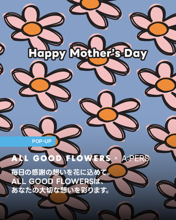 “世界緑花計画”をテーマに花とライフスタイルを提案するALL GOOD FLOWERS(オールグッドフラワーズ)は、体験型ライフスタイルセレクトショップ「A:PERS(エイパース)」にて、母の日に合わせたコラボイベントを2026年4月29日(水)~5月12日(火)の期間で開催いたします。