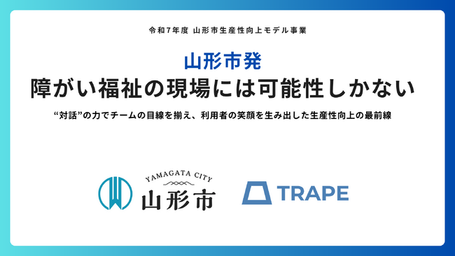 株式会社TRAPE(本社:大阪府大阪市、代表取締役:鎌田大啓)は、山形市から受託した「令和7年度 山形市生産性向上モデル事業」 において、山形市内の障がい福祉事業所に対する伴走支援・定着支援を実施しました。