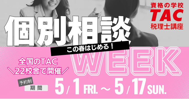 【TAC税理士】この春はじめる!個別相談WEEK~全国のTAC22校舎で開催~
