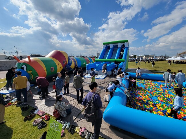 ゴールデンウィークのまんのう公園に巨大エアー遊具が新登場!二種類のスライダーや、大興奮間違いなしのジャンピングトンネル、みんな大好きなボールプールが同時に楽しめます。